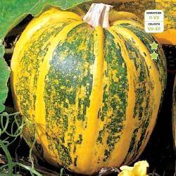 €3,00Zaaien: vanaf half maart (binnen) of vanaf half mei buiten op de plaats van bestemming. Plantafstand 100×150 cm. Pompoenen kunnen probleemloos buiten worden geteeld. De groeitoppen moeten regelmatig worden gesnoeid en zijn eetbaar! Oogst tijdens droog weer geeft de beste bewaarbaarheid. De zeer stevige vruchten zijn afgeplat rond met een doorsnede van 20cm, soms met een uitlopend puntje. Er komen 3 tot 4 vruchten per plant. dit ras is minder vatbaar voor meeldauw en virusaantastingen. 10 zaden