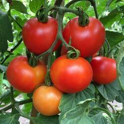 €2,00Zaaien: maart-mei binnen. Bij een hoogte van 5 cm in potjes verplanten. Zeer licht zetten en vanaf april bij mooi weer buiten af laten harden. Buiten uitplanten niet voor eind mei ivm nachtvorst. Tomatenplanten gebruiken veel water. Bij dit hogere of klimmende type moeten de zijscheuten wel verwijderd worden. Plantafstand is 60-80 centimeter. Sterke groeier met ronde en mooie rode vruchten. 90 Zaden