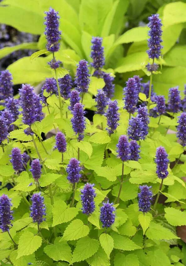 De Koreaanse munt plant met de officiële naam Agastache rugosa, familie van de Lamiaceae. De volwassen hoogte van dit vaste kruid voor zonnige borders is ca. 80 cm.